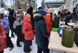 Для участников Зарницы в МБОУ СОШ №18 компанией "Домашняя кухня" была бесплатно организована полевая кухня